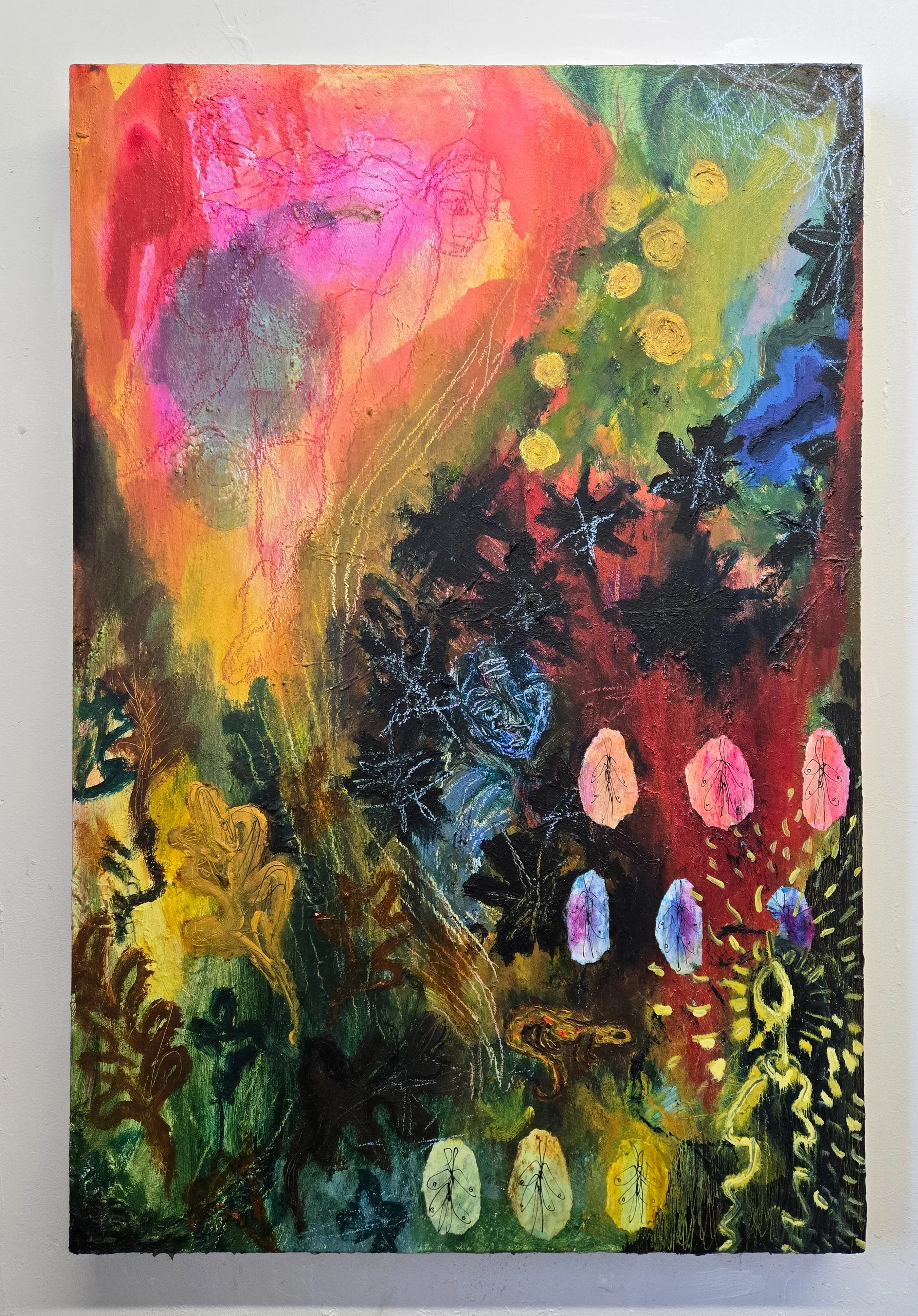 Under the Earth, Colored Pencil, Crayon, Flashe, Paper, and Acrylic on Panel, 36x24